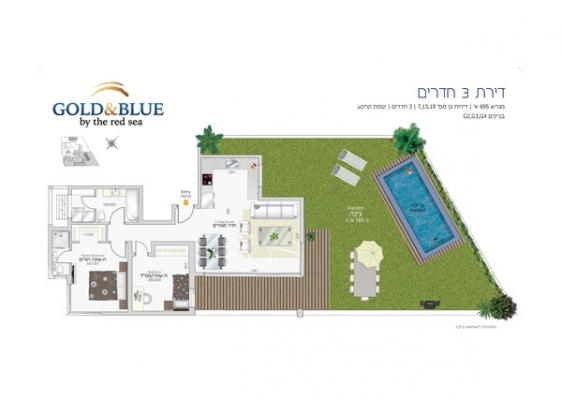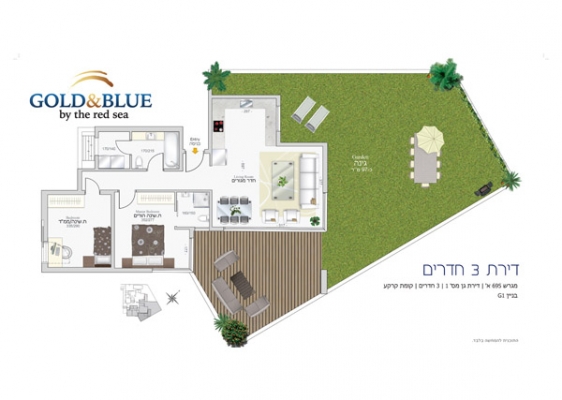 דירת-גן 3 חד', כ-80 מ"ר + כ- 100 מ"ר גינה לנוף (אופציה לבריכת שחיה)