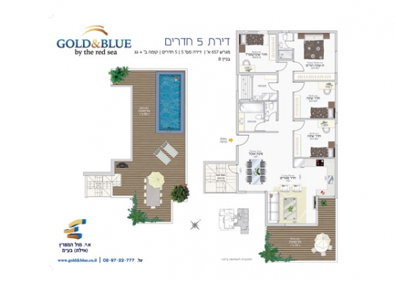דירת גג 5 חד' כ-120 מ"ר + מרפסת שמש לנוף כ- 23-48 מ"ר + גג ענק כ-100 מ"ר כולל בריכת שחיה כסטנדרט!